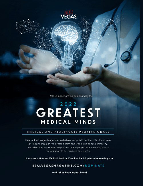 ![]() 2021 Castle Connolly Exceptional Women in Medicine Award | ![]() 2022 America's Most Honored Doctors Top 1% | ![]() 2022 2022 Top Doctors - Recognizing some of the Best Doctors in Las Vegas | ![]() 2022 2022 Greatest Medical Minds of Las Vegas |